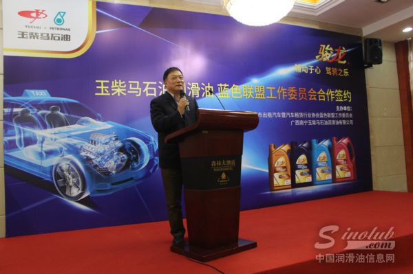 玉柴马石油董事长谢裕强、玉柴马石油销售副总经理陈长道、蓝色联盟工作委员会秘书长张福林、蓝色联盟工作委员会副秘书长陆建一、蓝色联盟秘书处办公室主任欧式修,及玉柴马石油骏龙项目组经理王宁杰等管理人员、蓝色联盟出租汽车公司领导等出席了签约仪式,玉柴马石油销售副总助理苏芃先生主持仪式。