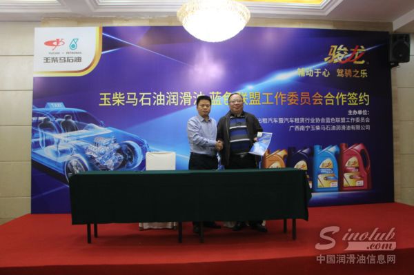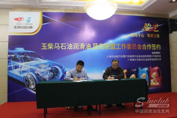 2017年11月6日,广西南宁玉柴马石油润滑油有限公司与上海市出租汽车暨汽车租赁行业协会蓝色联盟在常熟森林大酒店举行长期战略合作伙伴协议签约仪式。蓝色联盟作为上海市出租汽车在行业现代企业改革中脱颖而出的、以企业服务品牌为纽带的联合型经济体,此次与玉柴马石油建立长期合作关系,旨在树立服务品牌,加强服务质量管理。玉柴马石油也将一如既往地为合作伙伴提供优质的润滑油产品,竭力提供更好的支持与服务。