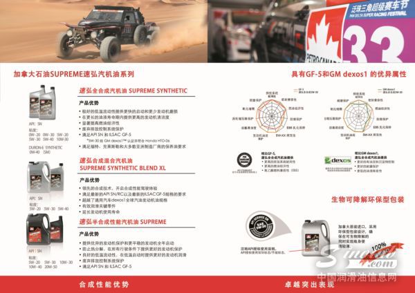 此次参展,加拿大石油带来旗下SUPREME速弘汽机油系列具有GF-5和GM dexos1的优异属性,使用高品质基础油制造,经过专门配制作,满足绝大部分OEM售后服务用油要求,抗腐蚀沉积物且抗磨损,在长途运输中保护发动机。