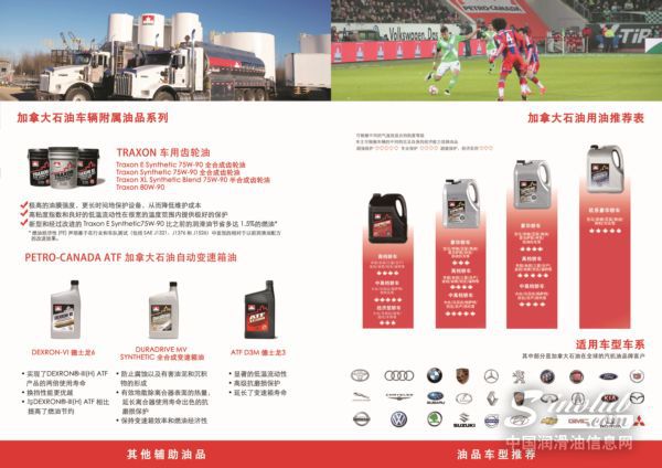加拿大石油润滑剂公司是加拿大最大的石油和天然气公司之一,运营涉及行业的上游和下游部分,在加拿大和全球均有分支机构。42年以来,Petro-Canada研究、开发和生产了350多种世界一流的高级润滑油、专用油液和润滑脂。产品在全球的众多行业中得到广泛应用,如运输业、采矿业、食品业、一般制造业、工业、发电行业、塑料加工业、林业和农业。