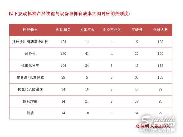 对于以上产品性能与设备总拥有成本之间对应的关联度,所有品牌厂商都认为:润滑油的性能特点直接影响设备总拥有成本(TCO),但只有接近一半的终端用户认为相关。