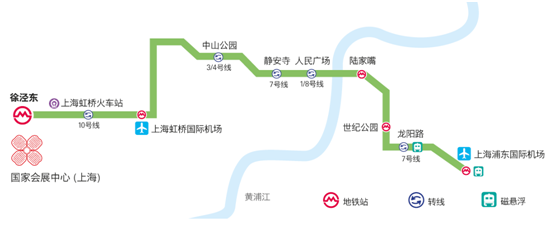 展馆距离上海虹桥交通枢纽仅1.5公里,毗邻虹桥机场、虹桥火车站。