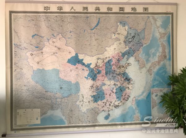 韦尔斯会议厅一角,沧桑发黄的中国地图上密密麻麻地标记着韦尔斯各地经销商的征战足迹