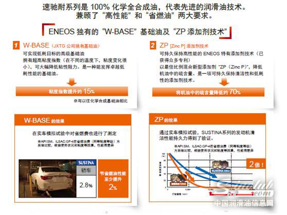 ENEOS品牌润滑油不仅全新换装,产品线也进行了调整。捷客斯(上海)贸易有限公司销售经理杨健华对SUSTINA速驰耐系列产品进行了详细介绍。全新SUSTINA速驰耐系列是日本进口100%化学全合成油,采用特有全新W-BASE 技术制作的全合成基础油,以及获得多项专利的ZP 技术添加剂精心制作而成。性能卓越,可以在保持极佳动力性能,防止发动机磨损的同时,大幅降低粘性阻力,发挥卓越的低油耗性能,持久保持清洁性。其粘度等级包括:0W-50、0W-20、5W-30、5W-40。