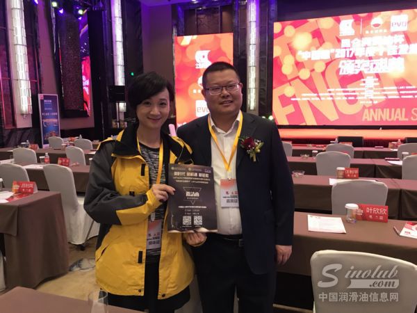 中国润滑油信息网副总经理朱文璇向中国石油兰州润滑油研发中心科研管理部高工汪利平介绍LubTop论坛和总评榜