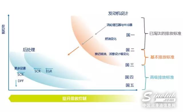 在过去的二十年中,国家对重型车辆不断提升排放标准,从国一到目前的国五,以及在2020年即将到来的国六,这样的举措不仅在于抑制车辆排放有害气体,还在于促使相关厂商注重产品技术的改进。纵观中重型卡车在迎合排放标准升级过程中所做的努力,可以清晰看到,自国四开始技术的改变开始依赖后处理设备,而国一、国二和国三标准的改变中,车辆技术的变化主要集中在发动机的改进上,在这其中,国二至国三阶段是个分水岭,自此硬件技术得到了真正的改变。车辆技术设计层面的变动会对车辆整体的运行环境产生影响,进而对润滑油带来全新的挑战。