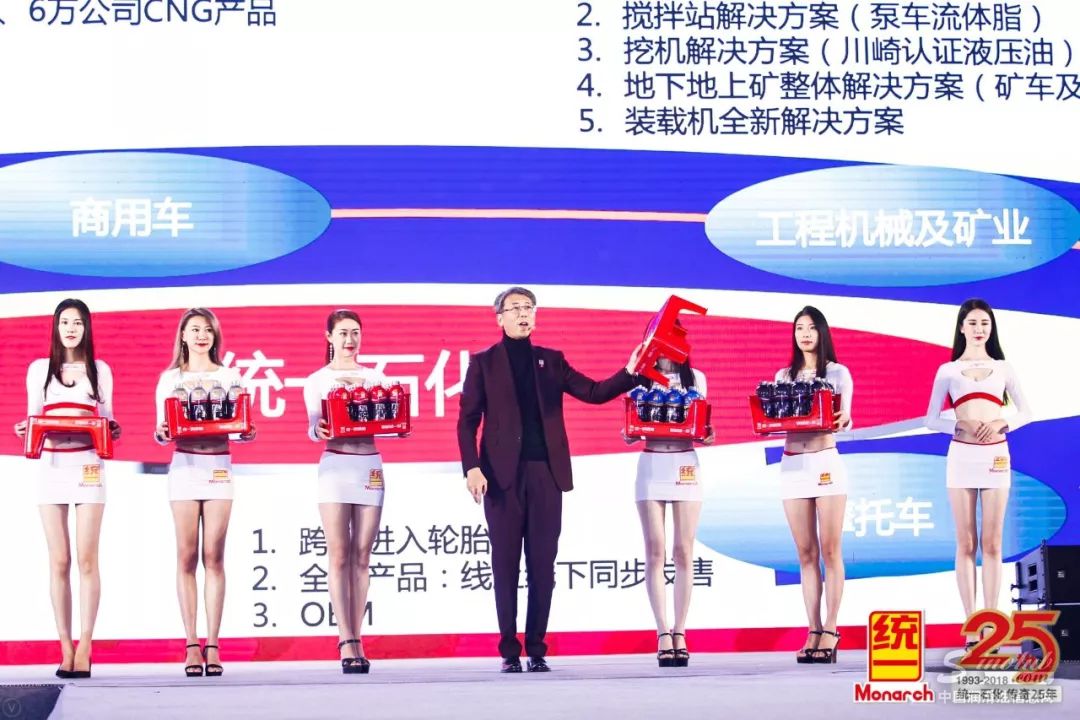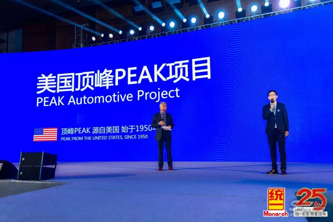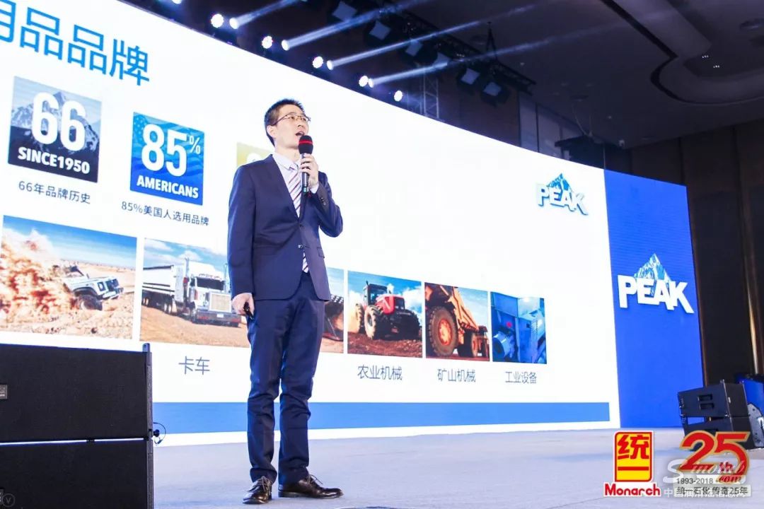 随后,统一石化市场部产品经理梁志华先生介绍了美国顶峰柴机油等全新产品,令全场嘉宾大开眼界。随后中美双方高管与优秀经销商代表上台共同启动了产品发布仪式。