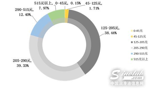 在价格方面,机油猫数据显示,近八成消费者支付的价格集中在125-205元和205-290元之间。受“双十一”影响,205元以上价格区间的成交占比相较上月有所上升。