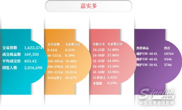 随着润滑油电商市场的不断发展,越来越多的用户选择通过电商平台购买心仪的润滑油产品。据首席正品机油电商导购平台机油猫(m.sinolub.com)的统计,受“双十一”电商节影响,2017年11月份,阿里系平台访客数为703.80万人次,相比10月上涨达47.12%;11月份浏览量为4162万次,相比上月大涨44.20%;11月份的成交量上涨157.40%,平均成交价也上升37.66%,彰显一年一度的“双十一”在消费者群体中依然有着旺盛的人气。