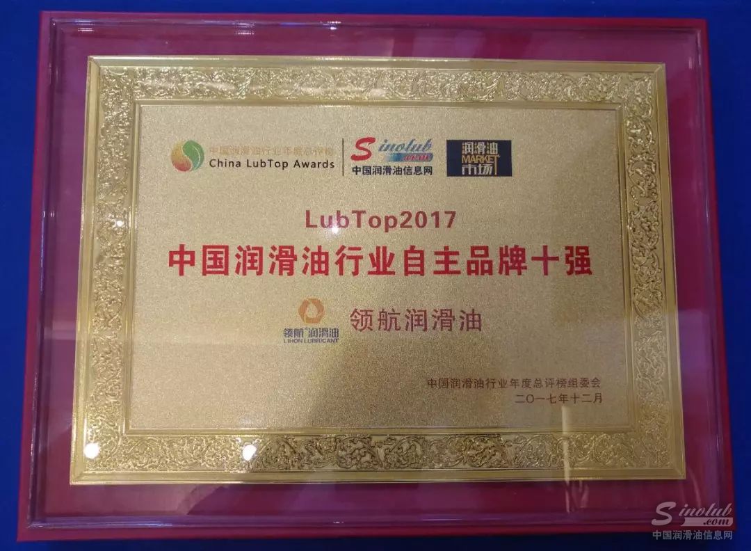 作为润滑油行业最具规模和影响力的全国性评选活动,“LubTop总评榜”由中国润滑油信息网(www.sinolub.com)、《润滑油市场》杂志发起主办,凭借一流的评选原则、一流的专家导师、一流的指导单位、一流的媒体平台、一流的论坛资源和一流的获奖品牌,被业界公认为“润滑油行业奥斯卡”,此次获奖是对领航润滑油的又一次充分肯定。