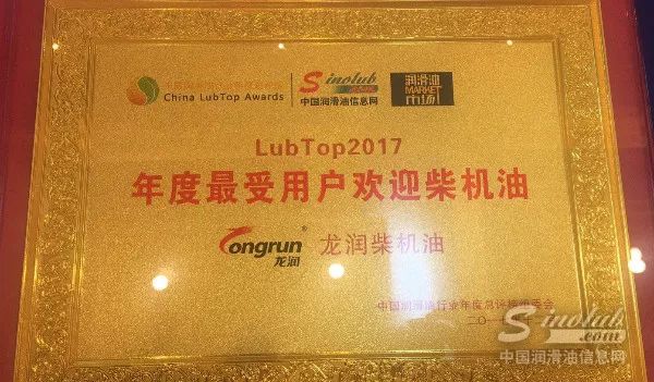 非常荣幸地,龙润润滑油获得了“LubTop2017中国润滑油行业自主品牌十强”、“LubTop2017年度最受用户欢迎柴机油”两大奖项。