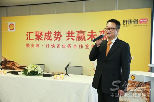 本次签约活动上双方领导均发表致辞,首先,壳牌(中国)销售总经理尹峰发表讲话:“壳牌深知合作伙伴的重要性,好快省公司对行业的深耕,以及好快省团队在行业中所积累深厚的行业经验,以及团队的创新精神,是壳牌所看重的,本次合作是顺势而为,必将提升双方的品牌实力。”