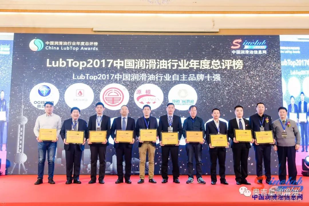 “LubTop总评榜”被业界公认为“中国润滑油行业奥斯卡”在这个中国最具影响力的润滑油行业年度颁奖盛典上,奥吉星荣获“LubTop2017中国润滑油行业自主品牌十强——第一名”和“LubTop2017年度最受用户欢迎汽机油”两项大奖。