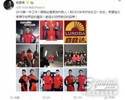 自2018年1月1日起,广受车友朋友们及赛车圈喜爱的国内知名润滑油制造商——路路达润滑油,已斥巨资力邀中国著名歌手、演员、赛车手拥有多重身份的实力派艺人任贤齐倾情代言,上午十点任贤齐官方微博发布也证实了此事。