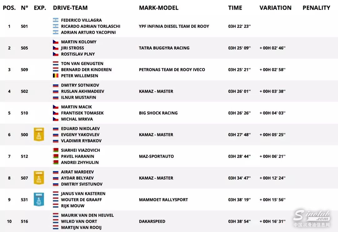 今日比赛中!零公里润滑油-Buggyra车队车手M.KOLOMY豪取第二名!纵观前几个赛段的成绩,M.KOLOMY可谓越战越勇,更体现了它对于战车以及地形的强大掌控力!另一位车手M. SOLTYS发挥依然稳定,独立赛段的成绩一直稳定在中上游的位置,今日第六赛段中取得了第十五名。