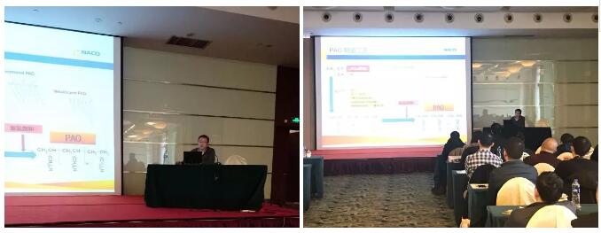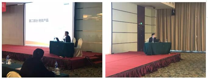 作为业内知名的技术专家——上海纳克副总经理刘中文先生为大家讲解了烷基萘的性能,以及PAO和烷基萘在润滑油中的应用,其中着重介绍了纳克最新的Nacoflow V系列超高粘度茂金属PAO产品。刘总对各个产品的理化指标、性能特点及生产调配都进行了详细阐述,让大家全面了解到合成基础油产品的优势及其在柴机油等成品润滑油中应用的经济性。会上,部分参会企业代表就应用中遇到的难题提出疑问,刘总也与提问者进行了现场互动,为大家答疑解惑。