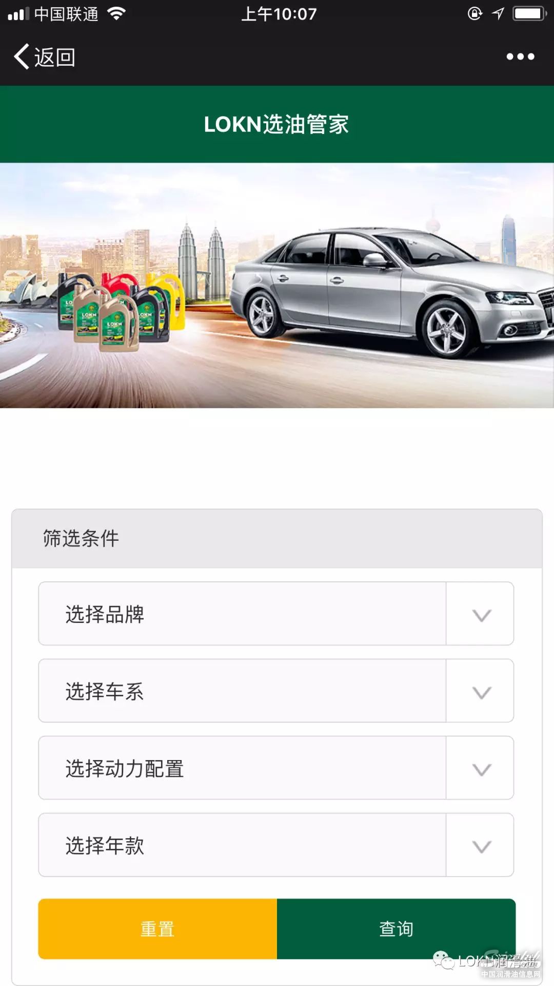 大家好,经过数月不断的努力,LOKN选油管家今天终于正式跟大家见面了!在这里,您可以通过输入您的车辆品牌、车系等信息查询到您的爱车最佳匹配机油及变速箱油,本系统全覆盖国内市售绝大多数车型,为您的爱车提供贴心的管家服务!