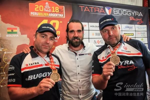 在为其两周的赛程里,零公里润滑油钢铁侠油品和车队保持紧密合作,助力车队在这场“勇敢者的游戏”中攻坚克难,砥砺奋进。车队主力车手M.KOLOMY和达喀尔新秀M. SOLTYS表现卓越,顺利抵达科尔瓦多终点大营,分获得第11、12名。最终2018达喀尔赛事,仅55%的车手和战车顺利抵达科尔瓦多终点大营,在漫长的比赛当中,他们都是英雄!