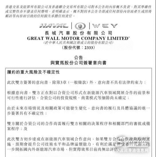 在香港上市的长城汽车不得不发布公告称,长城与宝马关于MINI品牌汽车合作于2016年4月18日签署了关于探讨和开发纯电动汽车与传统动力汽车可行性的保密协议。经双方沟通于2017年2月21日签署了关于对MINI品牌汽车合作的可行性进行探讨和评估的协议。长城汽车发表声确认了与宝马的接触,让长城宝马似乎成为了可能。受此影响,长城汽车在香港的股价跃升了19%,为两年来最高。