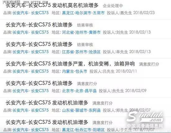 当所有人都以为闹得轰动全民的东风本田“机油门”事件已暂告一段落时,长安汽车却同样因“机油增多”问题爆发被推上舆论的风头浪尖。有部分CS75车主表示自己的车出现机油增多现象,已经超过机油标尺上限2厘米,机油变稀并伴随很浓的机油味道。还有部分车主投诉称,存在发动机抖动、功率不足、烧机油、漏油冒黑烟等问题。据了解,出现机油增多的CS75多出现在2017款1.5T动力车型中,已有众多车主集中投诉。有媒体报道指出,据国内第三方汽车投诉网站显示,进入2018年后,关于CS75的投诉集中爆发,其中发动机部分投诉案件多达400多件,几乎全都是机油增多汽油味增大的投诉案件。