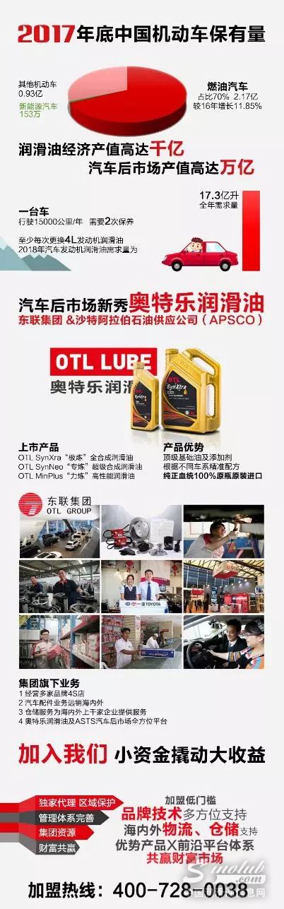 随着奥特乐润滑油中国市场经销商的布局不断扩大,我们的产品将深入到各省市大小城市,惠及全国的车主消费者们。同时我们的ASTS后市场全方位平台同样在现场展示,东联集团拥有30年管理国际品牌汽车4S店的丰富经验和OTL SYSTEMS东联仓储设备及物流产品、OTL Parts东联汽配、OTL lube奥特乐润滑油、OTL Service东联快修网络等业务,可为经销商更好地开拓市场提供支持与帮助。