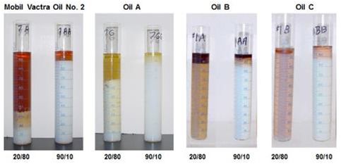 美孚威达TM 2号与其他测试油品(Oil A, B, C)相比分离性能优异