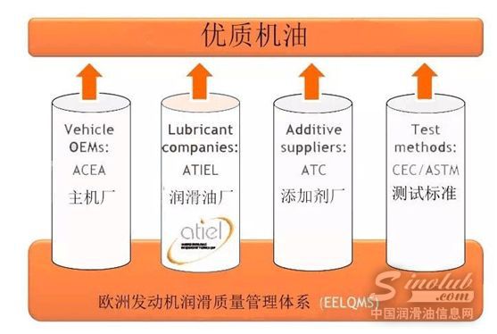 欧洲发动机油质量管理系统EELQMS,是欧洲生产发动机润滑油的企业共同建立的质量管理体系,在EELQMS这个框架的基础上,ACEA,CEC,ATC和ATIEL合作完成新机油从提出标准要求,到配方制定,到生产检测,到各企业声明合标,到市场抽查监管的全部过程。