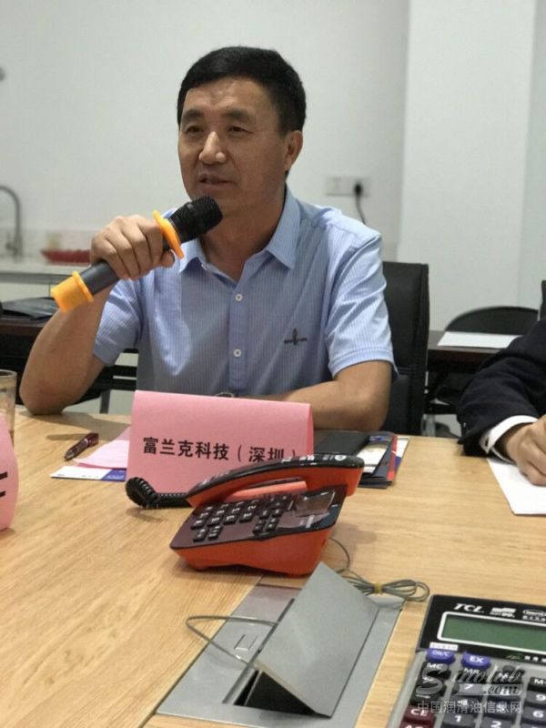 广东卫士石化有限公司林学腾董事长与广东省润滑油行业协会潘传艺秘书长(左)、富兰克科技(深圳)股份有限公司范承东总裁(右)亲切交流