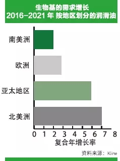 预期至2021年,北美洲和亚太地区生物基润滑油需求的年复合增长率将超过全球平均数,而欧洲和南美洲这个阶段的增长率将低于5%。Luzuriaga表明,亚洲决策者逐渐收紧该地区的环境监管框架。