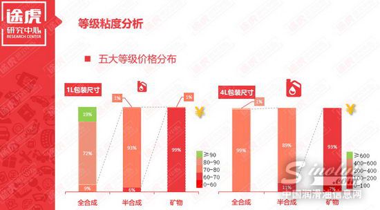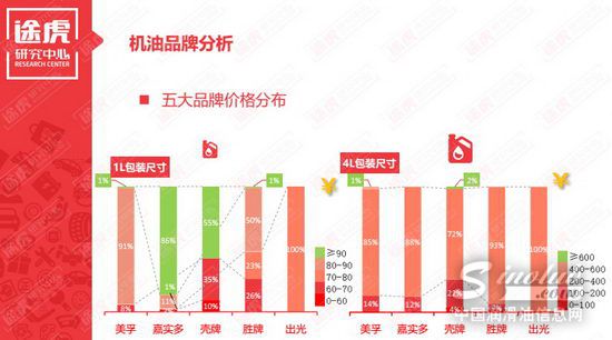 当然,这与各大品牌对于全合成机油、半合成机油、矿物机油的销售比例关系密切。在1L包装的机油产品中,全合成机油、半合成机油、矿物机油价格分别在80~90元、70~80元、60~70元。而4L装产品中,它们的价格集中在400~600元、200~400元、100~200元。价格横向波动则更为平稳。