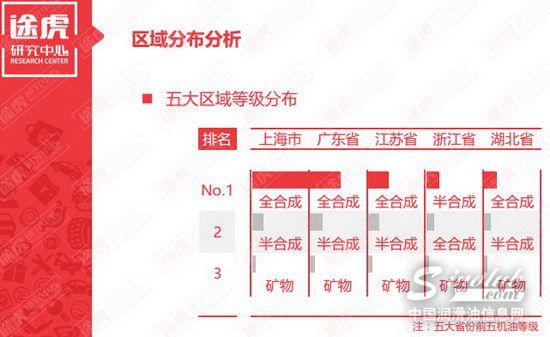 《报告》数据显示,最受市场青睐的全合成机油在上海、广东、江苏、湖北四大区域市场表现同样出彩,市场销量居于第一,但在浙江市场,全合成机油没能守住第一宝座,而是被销量有明显提升的半合成机油反超,退居第二。