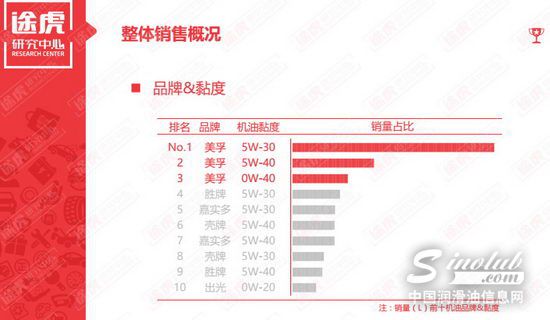 在各类机油黏度产品中,美孚品牌的销量包揽前三,且在5W-30黏度产品的销量上以绝对的优势遥遥领先其他品牌。