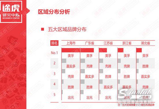 在全国各区域市场中,上海、广东、江苏、浙江、湖北成为机油消费的前五大区域市场。美孚、嘉实多、壳牌、胜牌、出光五大品牌成为这五个区域市场的先头兵,虽然美孚仍居于五大市场销量榜首,但嘉实多、壳牌销量紧追,三者在各区域的竞争较为激烈。
