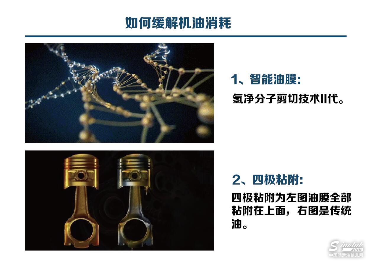 1、智能油膜,采用EPT弹性渗透技术后,大量的高分子密集渗透到汽缸壁金属表面,形成一层致密且富有弹性的高分子保护膜,由平滑的保护膜来代替相对粗糙的金属表面,使得汽缸壁金属表面的油膜厚度大于2微米,以提高油膜强度。