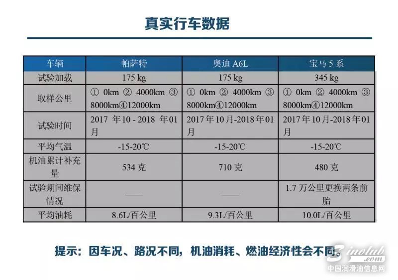 1、其中帕萨特机油累计补充量0.46L,奥迪累计补充量0.61L,宝马5系累计补充量0.41L,平均机油消耗0.05L/1000km。从几个大品牌的比较来看,在同样标示0W-40,1000公里很难保证0.1L的消耗量,一般都要到0.2L 。