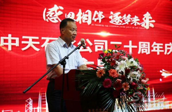 随着演出接近尾声,中天石化董事长高晓谋携公司高层管理人员登上舞台,中天石化营销总监李家成发表了热情洋溢的祝酒辞。李总监对与会嘉宾的到来表示热烈的欢迎,并与嘉宾们一起重温中天石化往昔的峥嵘,共话当下的纷繁,探寻未来的精彩!