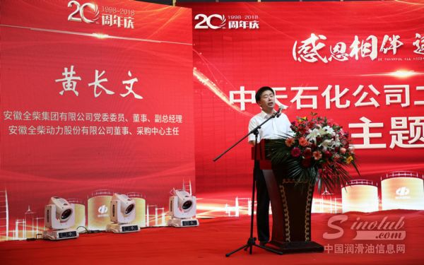 安徽全柴集团有限公司副总经理黄长文作为用户代表发表讲话,他表示通过的合作,全柴与中天石化致力于产品质量标准市场的完美结合,诚信互惠,共赢共存,结下了深厚的友谊,期待在未来的合作中能够强强联合、携手共进,以更多的先进产品和先进技术服务市场,解决发展中的实际难题。