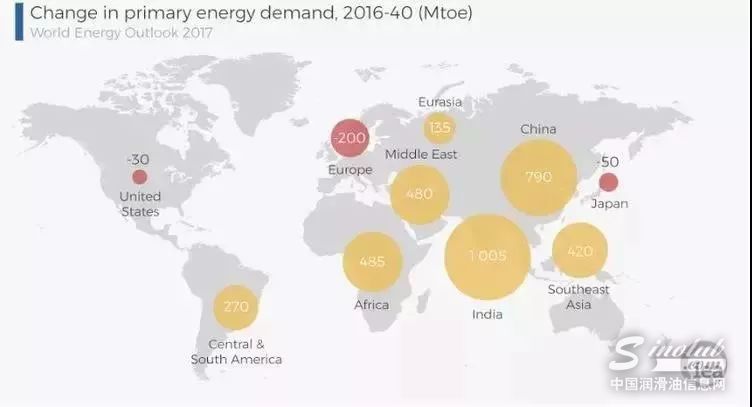 图2:IEA2016-2040年全球各地区主要能源需求变化