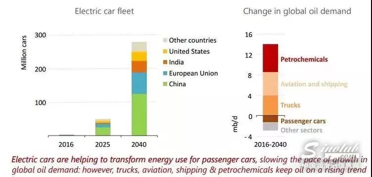 图3:IEA2016-2040年全球电动汽车保有量及全球石油使用量