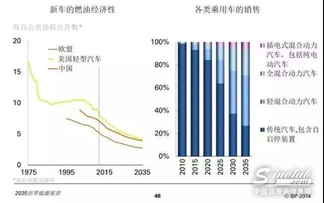 图6:BP2010-2035年燃油经济性及各类乘用车销售