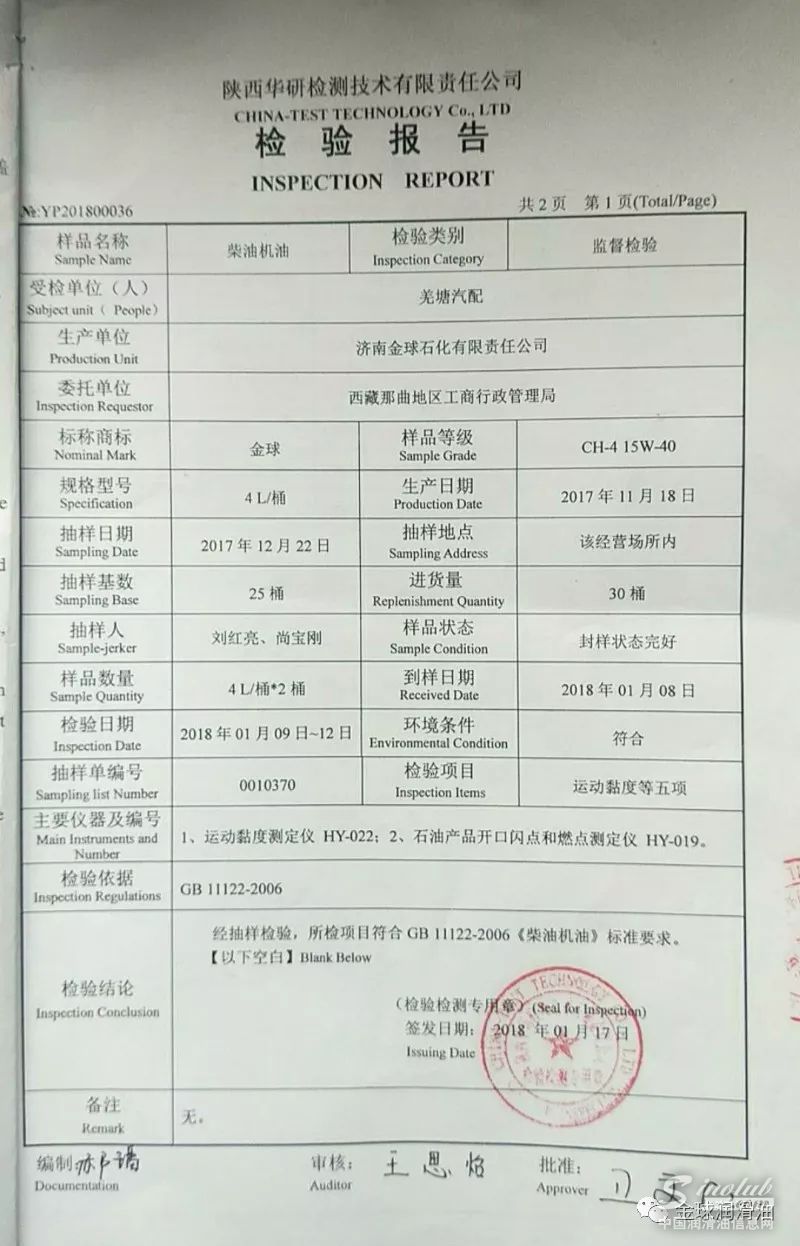 据悉,2018年初西藏那曲地区工商局对当地的润滑油市场进行了一次小规模的市场抽查,金球润滑油有幸被抽中。