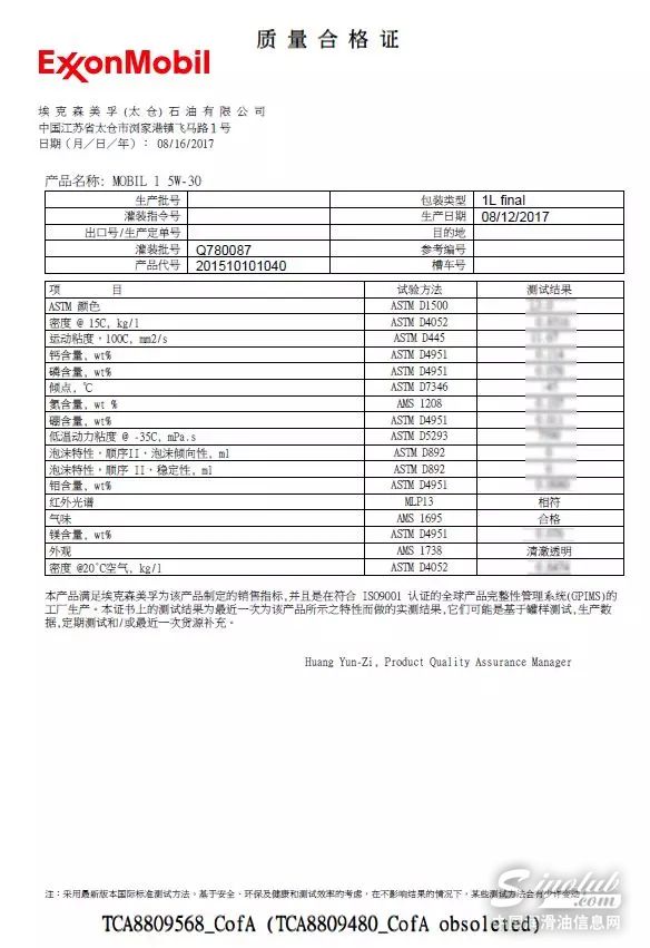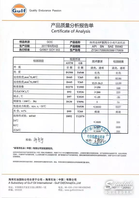 附2:美孚与海湾出具的批次油品证明