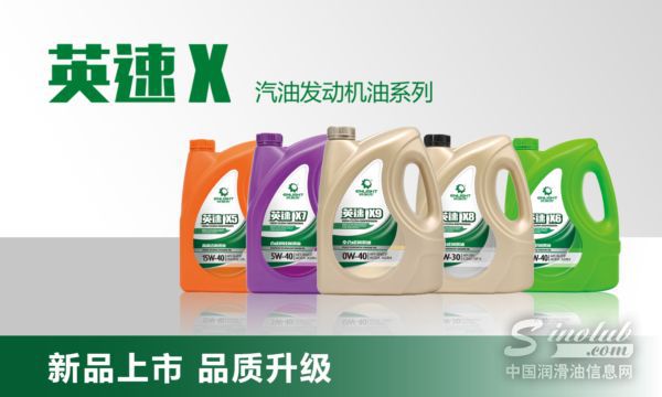 “英速”汽油发动机油系列产品:英速X9全合成润滑油SN 0W-20 W-30 W-40W-30W-40、英速X8全合成润滑油 SN 5W-20W-30W-40、英速X7合成科技润滑油 SN 5W-30W-40W-40、英速X6合成型润滑油 SL 5W-30W-40、英速X5高清洁润滑油 SJ 5W-30W-30W-40