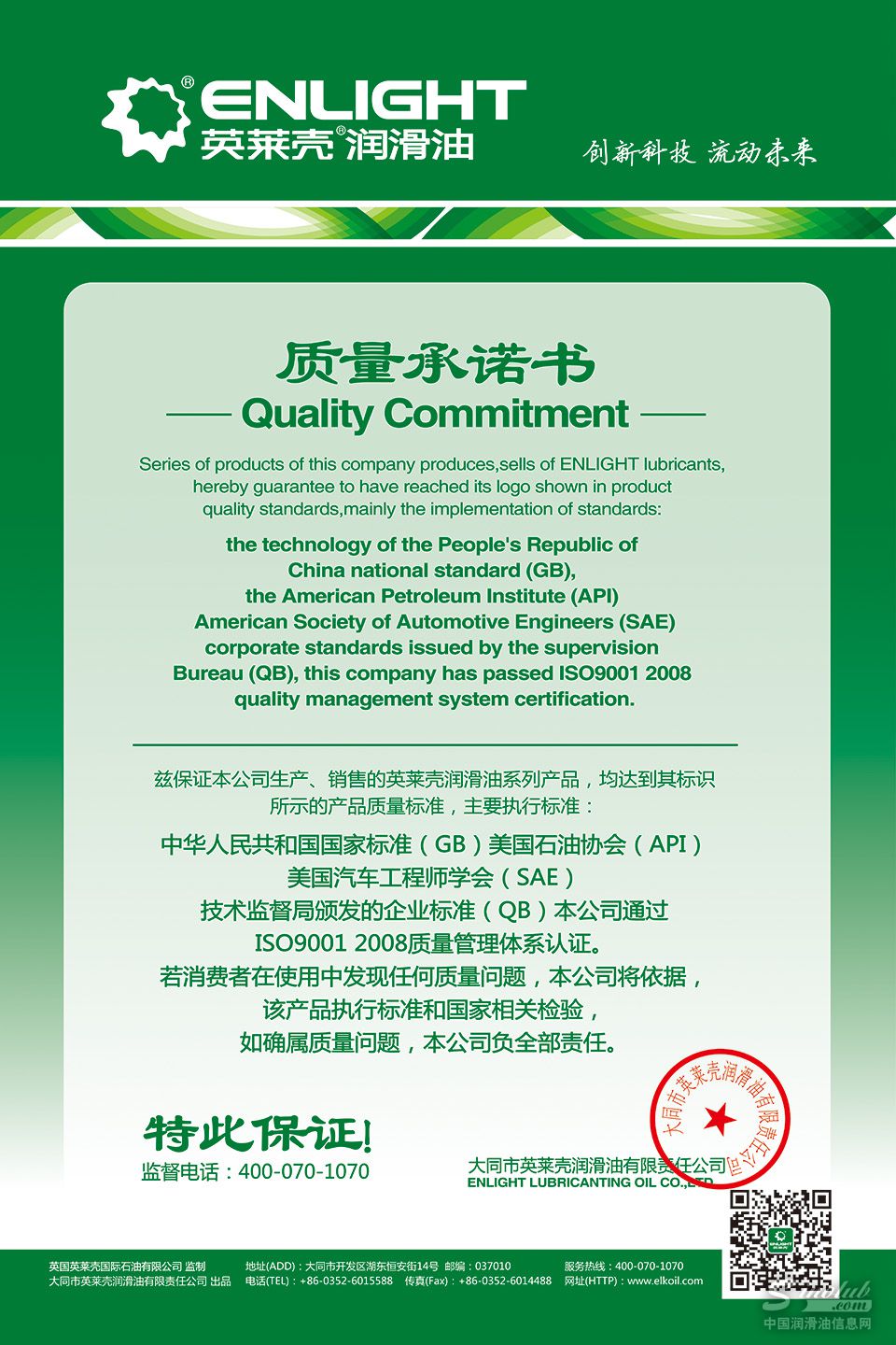 精于工、匠于心、品于行,润滑油行业从未像今天这样热切呼唤“工匠精神”。英莱壳润滑油负责人张志斌表示,英莱壳润滑油对产品质量和服务精益求精。“超凡品质,专业服务”,是英莱壳的服务宣言,更是英莱壳市场服务和营销网络建设的理想和目标。据介绍,英莱壳配备先进齐全的检测设备,每一滴油在出厂前都经过精密的检测,对质量层层把关,让用户放心。英莱壳公司采用先进的润滑油技术,配备精湛的技术团队,先进的设备和优异的管理,极大的提升了英莱壳品牌在润滑油领域的竞争力,在推动中国的环保节能减排、低碳发展等方面已有显著成绩。
