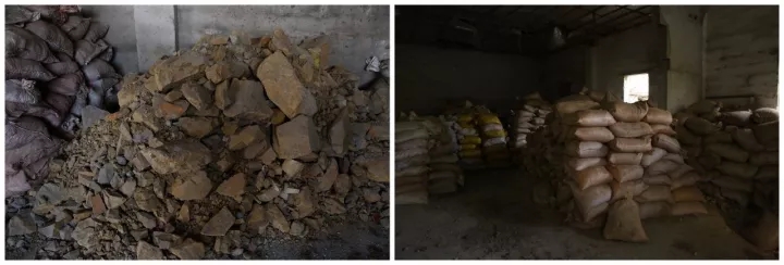 自己家的后院,老房子里都是买来的紫砂原矿经过挑选之后,都堆在这里露天风化,时间久了上面都长满了杂草。现在有很多商家为了节省时间和资源,泥料直接从练泥厂购买,但是厂里的泥料要么容易出现假货,要么就是风化或陈腐不够,还是自己采购和制作的心里踏实。