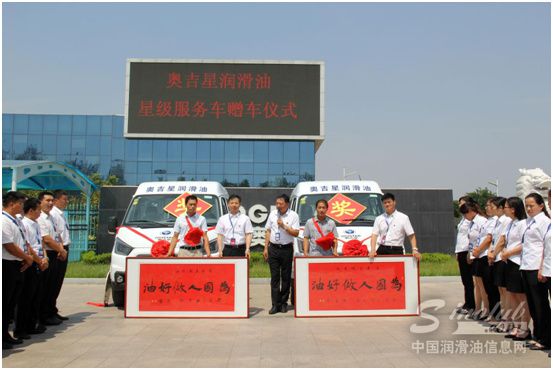 2018年6月,安徽、山东两位经销商分别获赠奥吉星润滑油“星级服务车”