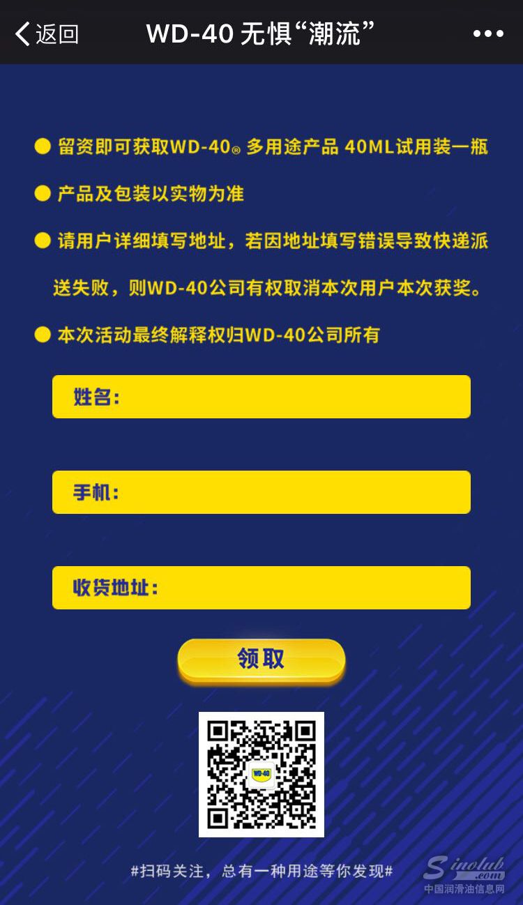 即可获得“WD-40® 多用途产品试用装”一瓶