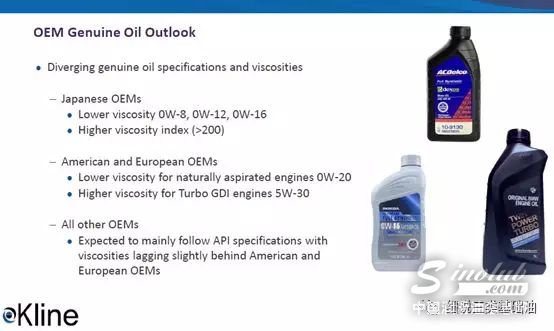 美系和欧系车的趋势:1) 低粘度,如0W20;2)高粘度,如适用于涡轮增压直喷发动机的 5W30;