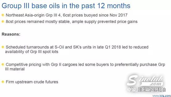 1) 由于市场需求较为稳定,因此亚洲产三类基础油价格未来将维持稳定,波动较小;