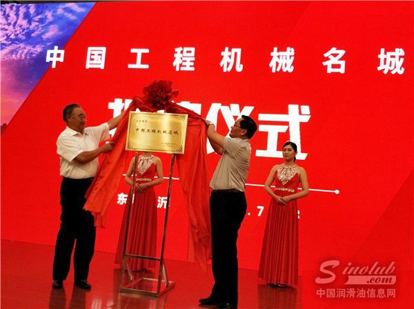 中国机械工业联合会会长王瑞祥与临沂市政府相关领导为“中国工程机械名城”揭牌,该称号落户山东临沂市。